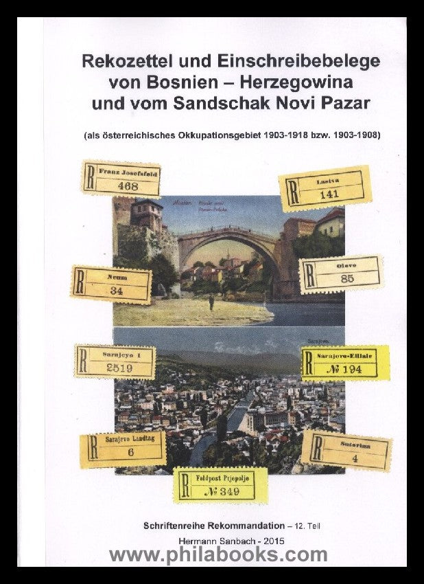 Sanbach, H., Rekozettel und Einschreibebelege von Bosnien-Herzegowina und vom Sandschak Novi Pazar (als österreichisches Okkupationsgebiet 1903-1918 bzw. 1903-1908), Schriftenreihe Rekommandation Nr. 12, 2015, 91 S., zahlreiche farbige Abb. #67878