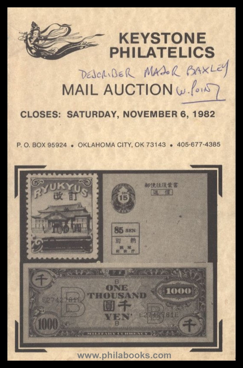 Keystone Philatelics, Mail Auction, Oklahoma City, 06.11.1982, dabei Riu-Kiu-Inseln, die Lose sind von Major Baxley W. Point beschrieben, siehe Scans, 40 S., mit Abb. #68040