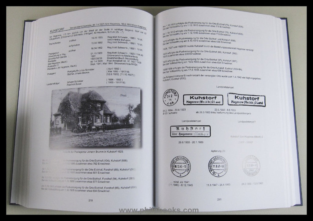 Puskeiler/Wickboldt, Dorfpostämter und Postagenturen im Bereich der Oberreichs-Postdirektion Schwerin, Postgeschichte 1868-1945, Band 1 Schwerin I-Mö, 2017, Hardcover, Stempelkatalog-und Handbuch, 427 S., mit vielen farbigen Belegabbildungen, Auflage nur 100 Exemplare, druckfrisch #68409