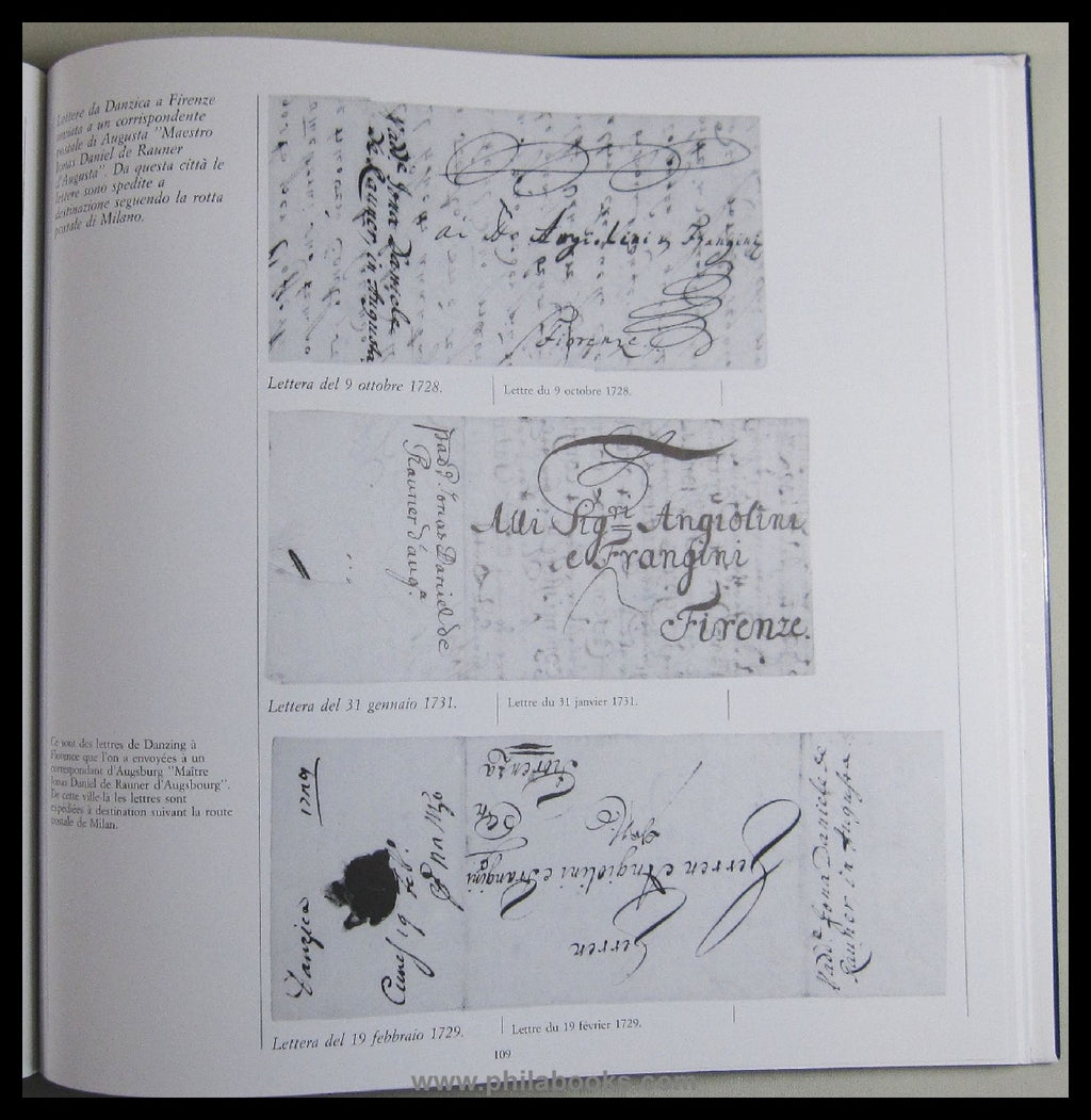 Rigo, Franco: Venezia le vie della posta, Venezia per L' Europa, Le vie die Francia, die Fiandra, die Vienna fin al XVIII seccolo, 1993, 140 S., anschauliches Buch aus der bekannten bibliophilen Reihe des Venedig-Experten Franco Rigo, in diesem Bandüber die frühe Post in Venedig, Großformat mit vielen Abb. u.a. von Vorphilabelegen aus Frankreich, Wien und Flandern, die erklärt werden, Text ital. und frz., der Einband fingerfleckig und Kratzspuren, sonst gut erhalten #68411