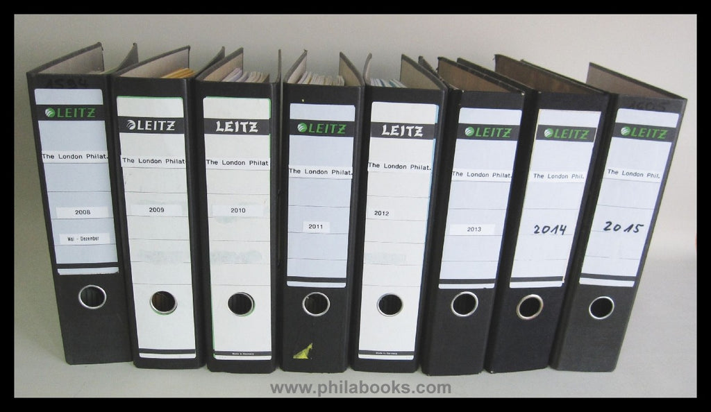 The London Philatelist, bekannt exzellente Publikation der Royal Philatelic Society London, hier ein kompletter Run von Mai 2008 bis April 2016, gelocht und abgeheftet in 8 Leitz-Ordnern, durchweg bis auf die Lochung in sehr gute Erhaltung, 80 Hefte #68920