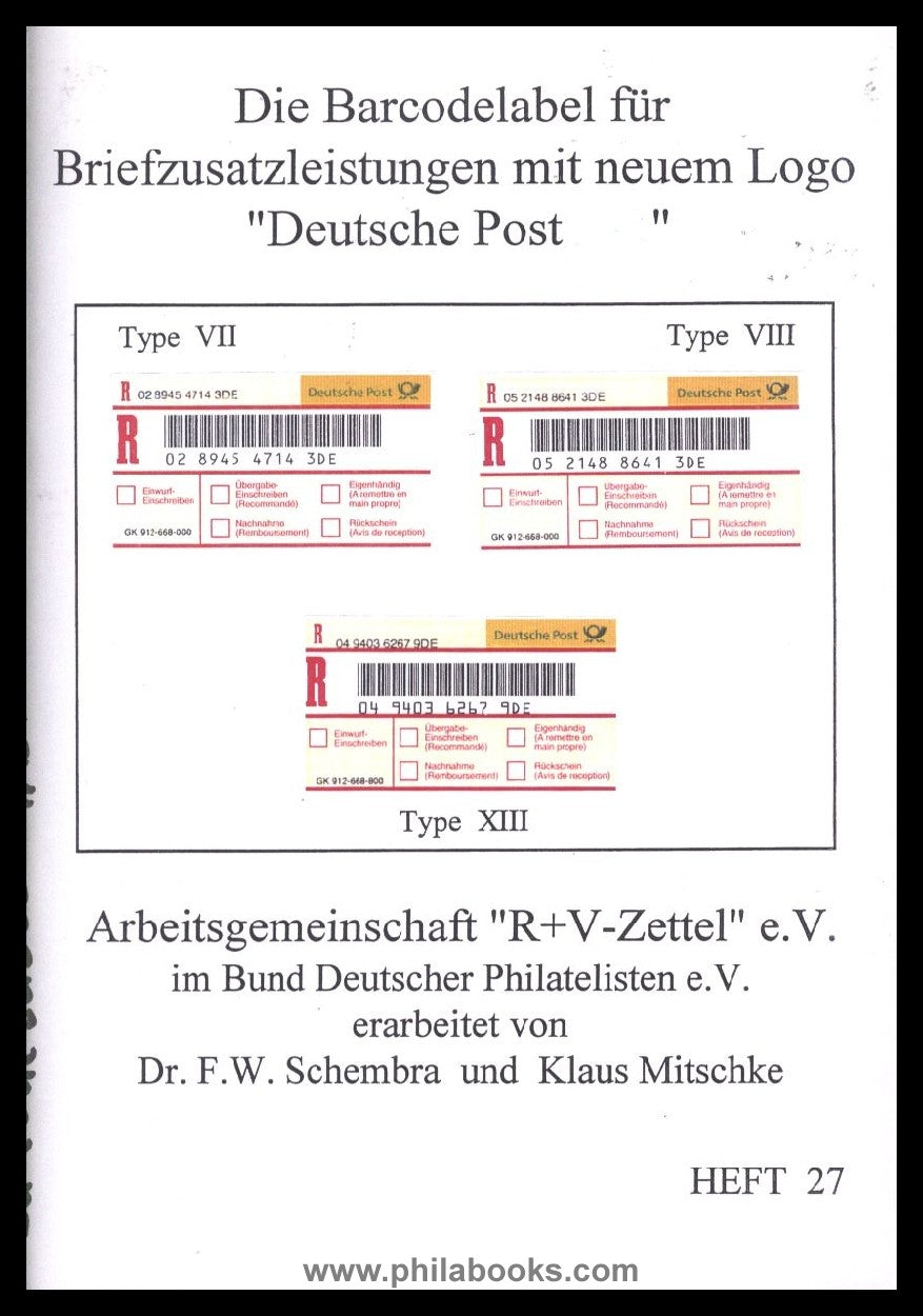 Mitschke/ Dr. Schembra, Die Barcodelabel für Briefzusatzleistungen mit neuem Logo 'Deutsche Post', ArGe R+V-Zettel Heft 27, 2001, 64 S. mit Abb., mit Ergänzungsblatt #69155