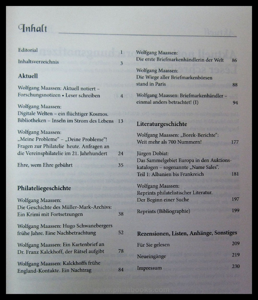 Maassen, W. (Hrsg.), Phila Historica, Zeitschrift für Philateliegeschichte und Philatelistische Literatur, Jahresband 2015, 2015, ca 1000 S., mit Abb., darin u.a. über das Müller-Mark-Archiv, Hardcover Format A 4, nur ca 50 Stück Auflage, #69173
