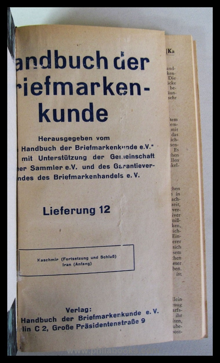 Handbuch der Briefmarkenkunde, Lieferung 12 bis 15, 1943, gefällig privat gebunden, 322 S., mit Abb., dabei der komplette Teil IRAN, Teile des Buchblockes lose, Kriegsproduktion! #69185