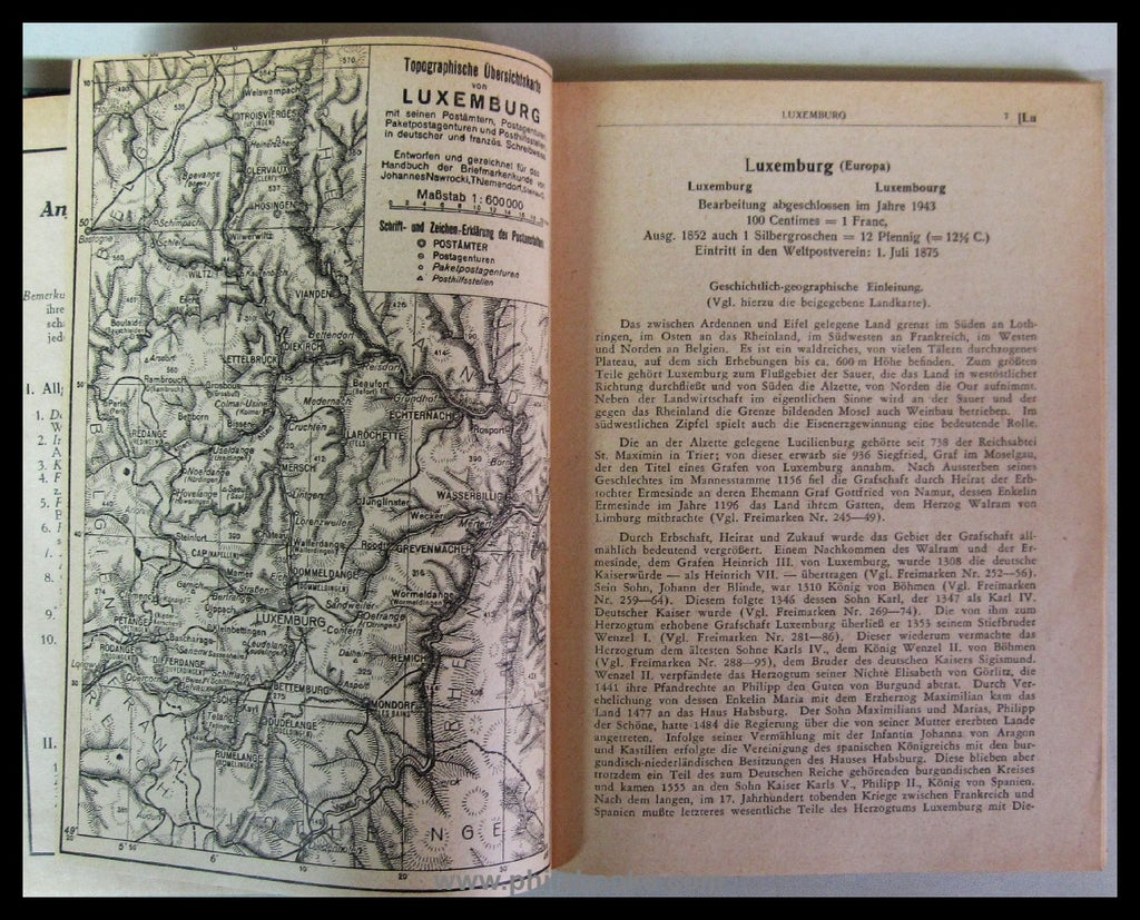 Handbuch der Briefmarkenkunde, Lieferung 16/17, Luxemburg, 1943, 129 S., mit Abb., privat gefällig gebunden, Kriegsproduktion, innen kleine Papier-und Bindungungsmängel, etwa 10 S. falsch herum eingebunden #69186