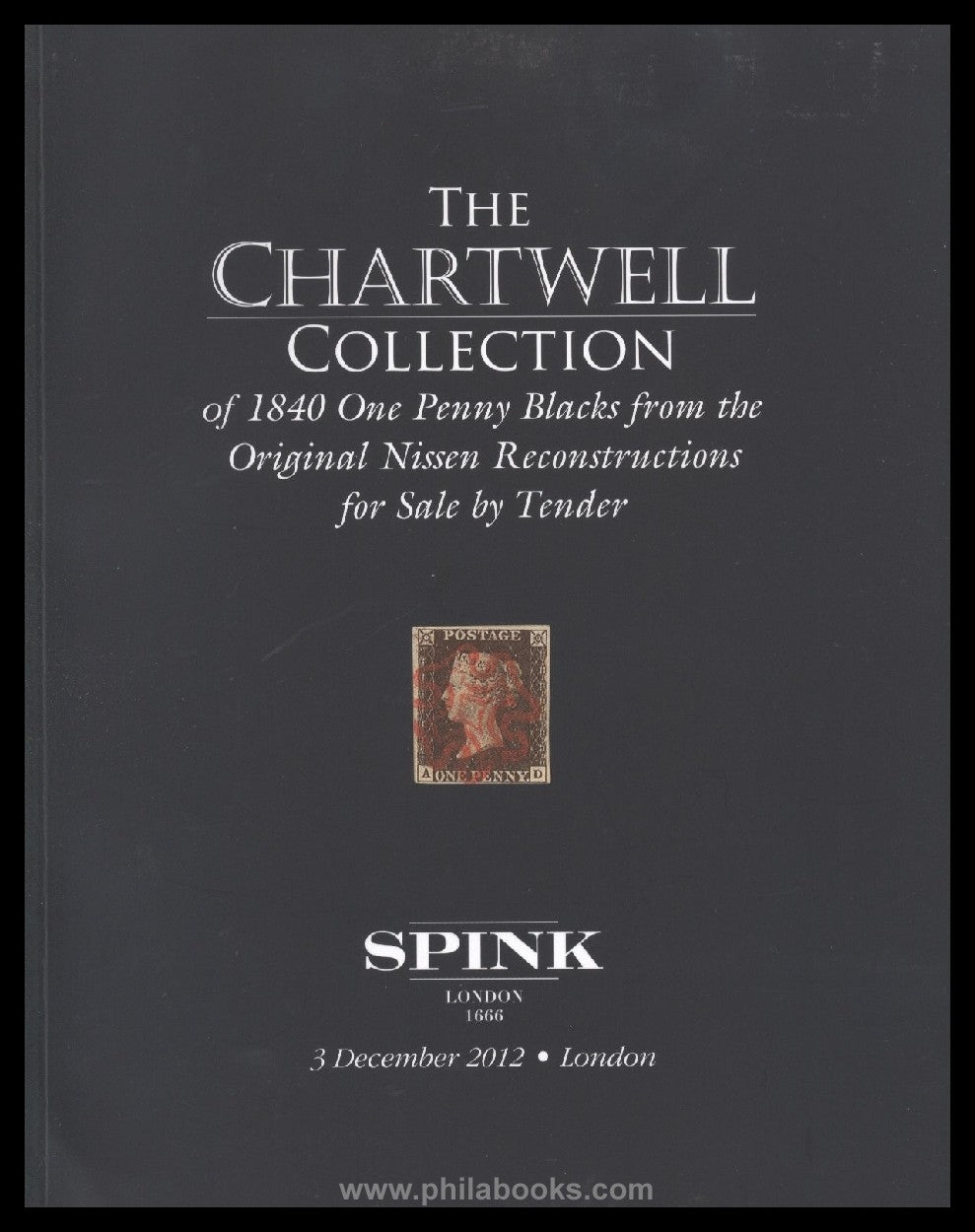 Spink, London, 03.12.2012, The Cartwell Collection of 1840 One Penny Blacks from the Original Nissen Reconstructions for Sale by Tender, 44 S., die Sammlung beinhaltet 2706 Penny Blacks, gedruckt auf verschiedenen Platten #69293