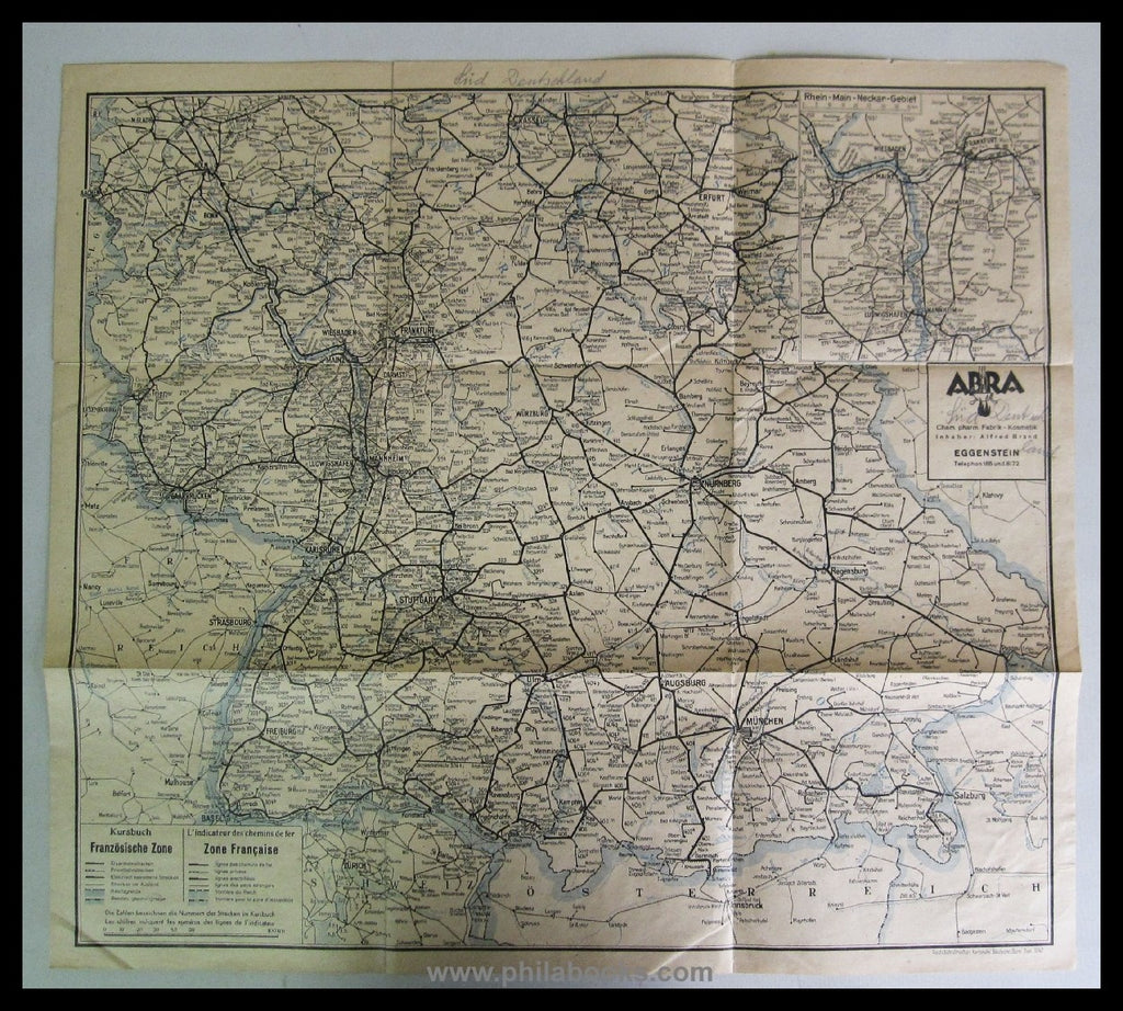 Reichsbahndirektion Karlsruhe, Bautechn. Büro, Jan. 1947, Kursbuch Französische Zone, Faltkarte Format 51,5x46 cm #69620