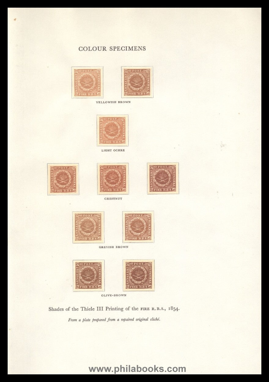 Schmidt-Andersen, The Postage Stamps of Denmark 1851-1951, 1951, Handbuch-Klassiker der dänischen Briefmarken, verausgabt von der Dänischen Post, hier NUR die öfters fehlenden 10 NACHDRUCKE der Thiele III-Ausgabe von 1854 von den Originalplatten als Ausriss aus dem Buch, 2-seitig etwas beschnitten, die Marken wie üblich fest eingeklebt, gut erhalten. #69717
