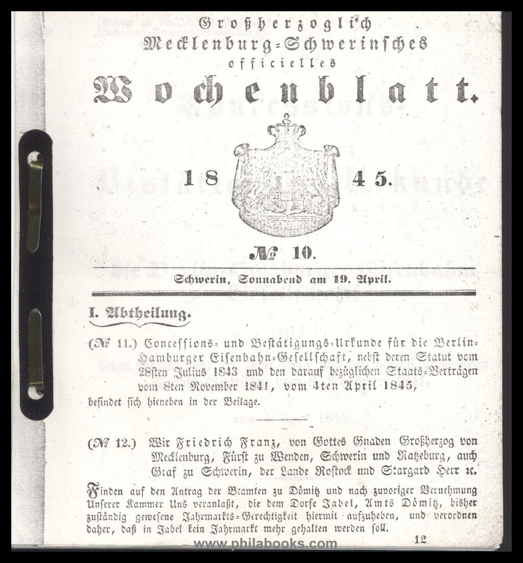 Großherzoglich Mecklenburg-Schwerinsches offizielles Wochenblatt, No. 10, Schwerin, 19.04.1845, Concessions- und Bestätigungs-Urkunde für die Berlin-Hamburger Eisenbahn-Gesellschaft etc., gehefte KOPIE #69876