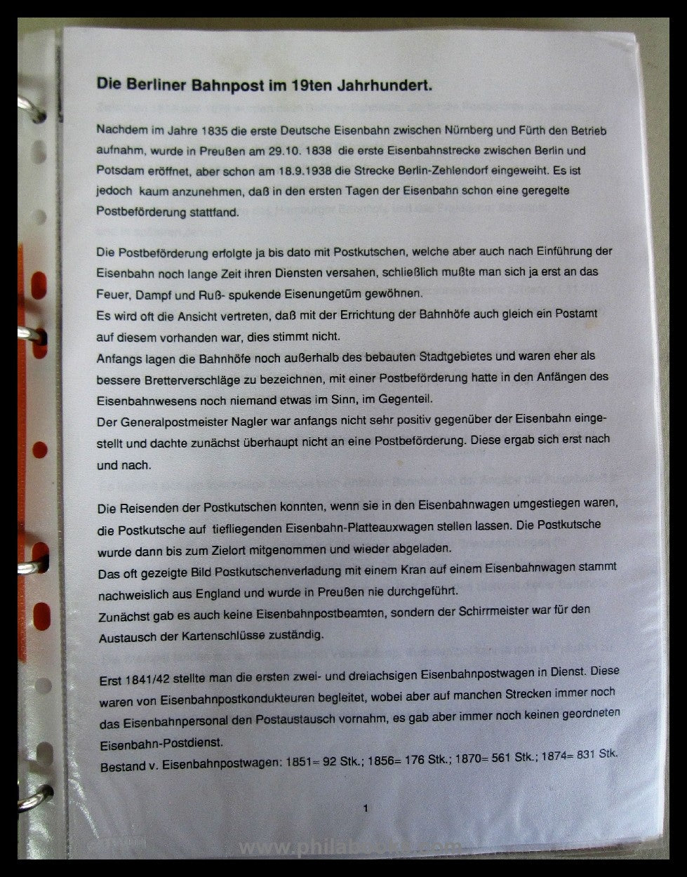 Ein Leitz-Odner mit Kopien von Unterlagen die Bahnpost von Berlin und Umgebung betreffend, dabei auch Karten #69884