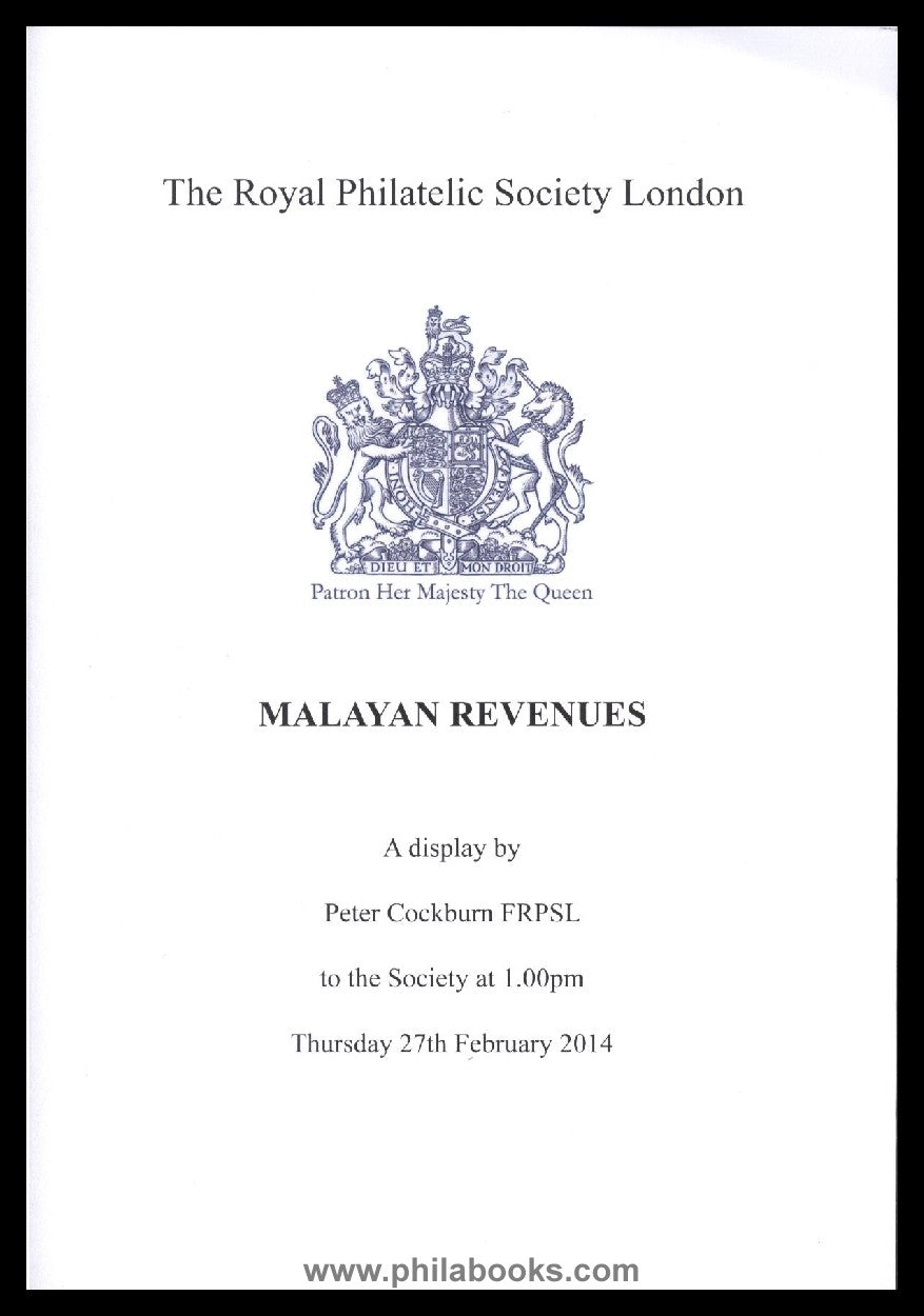 Cockburn, P., Malayan Revenues, A display to the RPSL, 27.02.2014, 36 S., Farbe #70142
