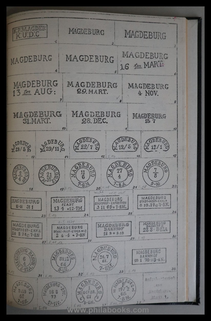 MAGDEBURG: Freye, W.: Magdeburger Poststempel aus zwei Jahrhunderten, Die Entwicklungen der Magdeburger Aufgabestempel verbunden mit einer Zusammenstellung der wichtigsten Stempel der Magdeburger Stadt-und Vorortpostämter und einem Anhang mit den Magdeburger Sonder- und Werbestempeln, 1973, ca 80 S., mit 7 Tafeln, ex. Werner Münzberg #70360