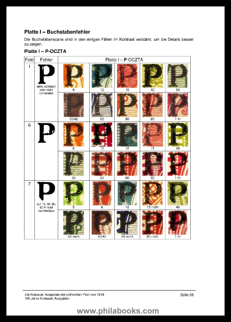 Lenke, M., Die Krakauer Ausgaben der polnischen Post von 1919, 100 Jahre Krakauer Ausgaben, Plattenfehler, Erläuterungen, Aktualisierte Plattendaten, Originalabbildungen der Plattenfehler, Moderne Verfahren zur Vermesserung, 2019, Hardcover, 243 Seiten, mit zahlreichen farbigen Abbildungen, auch Detailvergrößerungen zu den Platten und viele Informationen zu Fälschungen, jetzt lieferbar! #70540