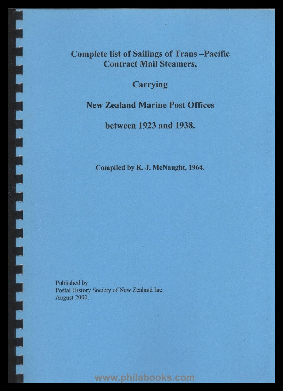 McNaught, K.J.: Complete list of Sailings of Trans-Pacific Contract mail Steamers carrying New Zealand Marine Post Offices between 1923 and 1938, Postal History Society of New Zealand, 2000, 21 S., mit einigen Abb. #70549