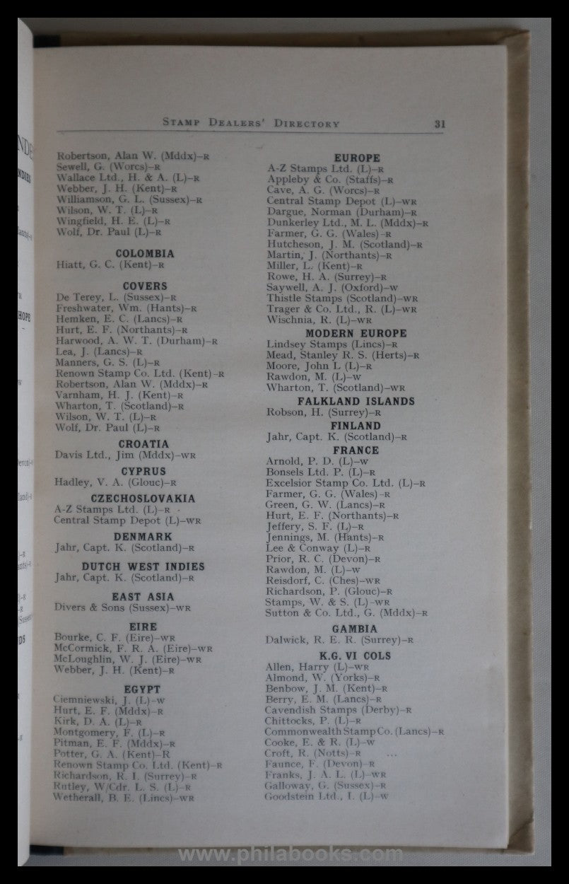 Morgan, T., International Stamp Dealers Directory 1950-1951, Covers the Whole Field of Commercial Philately, 3. Edition, A Harris Production, 138 S., interessantes Verzeichnis von heute teils schon legendären Firmen, Direktorin bei Harris Publications war damals Vera Webster (später Trinder) #70926