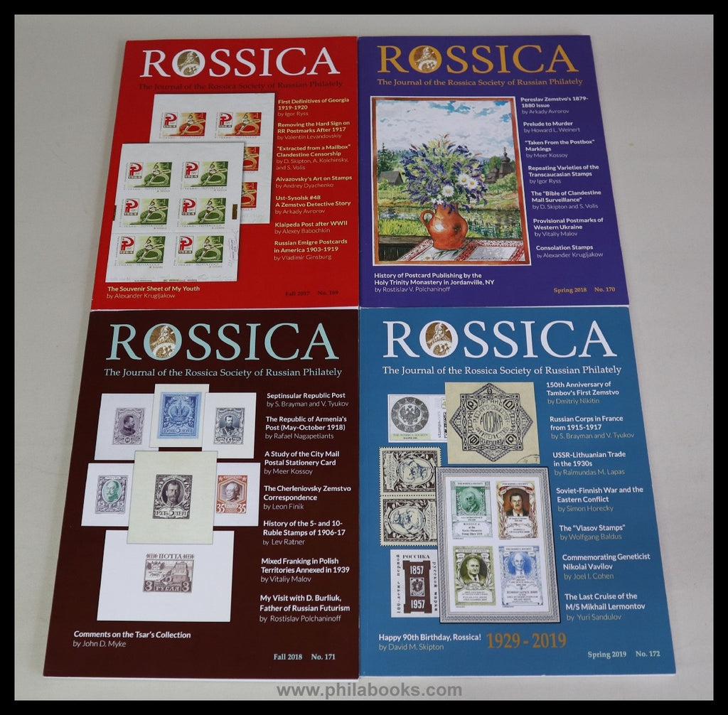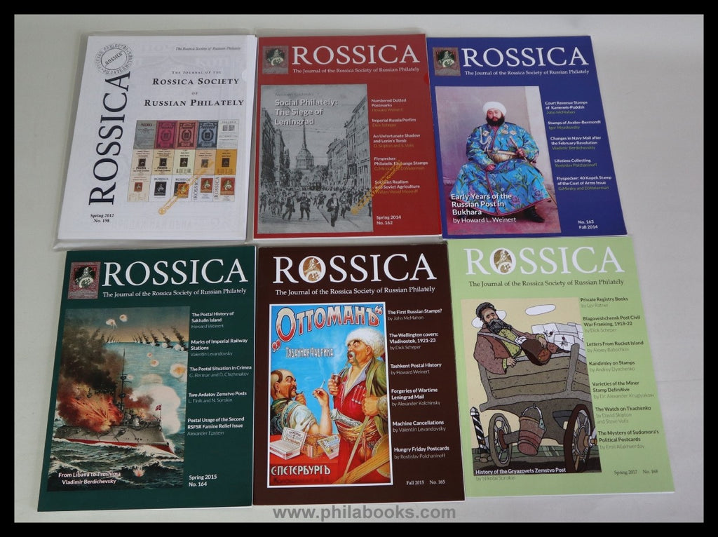 The Journal of The Rossica Society of Russian Philately, hier die Ausgaben 158 sowie 162-165 und 168-72 aus 2012-2019 in nahzu druckfrischer Erhaltung, meist um die 100 Seiten, die neueren 138 S., Nr. 158 und 162 ungebunden, Hochglanzpapier mit sehr vielen farbigen Abbildungen, sehr gute Philateliezeitschrift der internationalen Russland-Sammlergemeinschaft, insgesamt 10 Ausgaben, Einzelpreis USD 18+Porto #71444