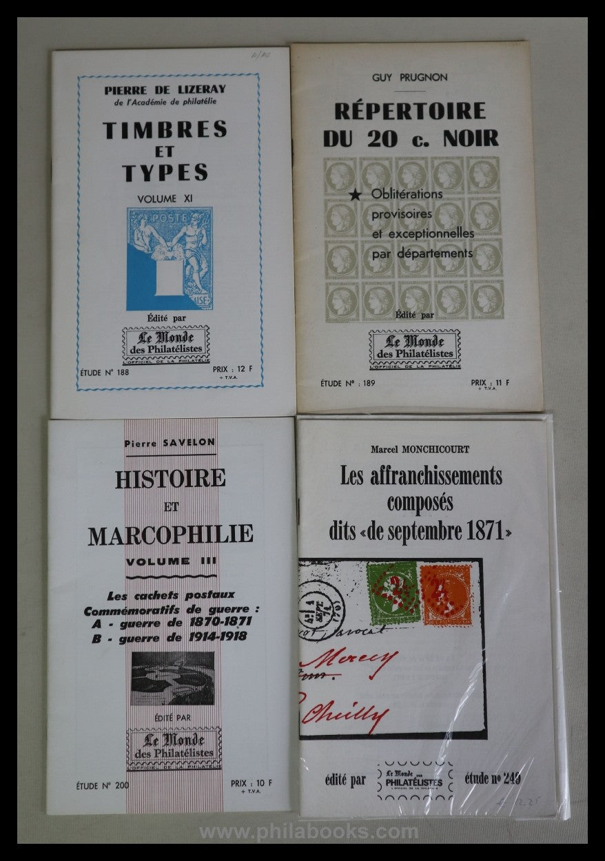 Le Monde des Philatélistes, hier eine kleine Sammlung von 11 Ausgaben der bekannt guten kleinen Monographien zur Klassik Frankreichs bis 1900, dabei Nr. 33, 47, 54 (2 Auflagen), 87, 87, 167, 169, 188, 189, 200 und 249, gut bis sehr gut erhalten #71571