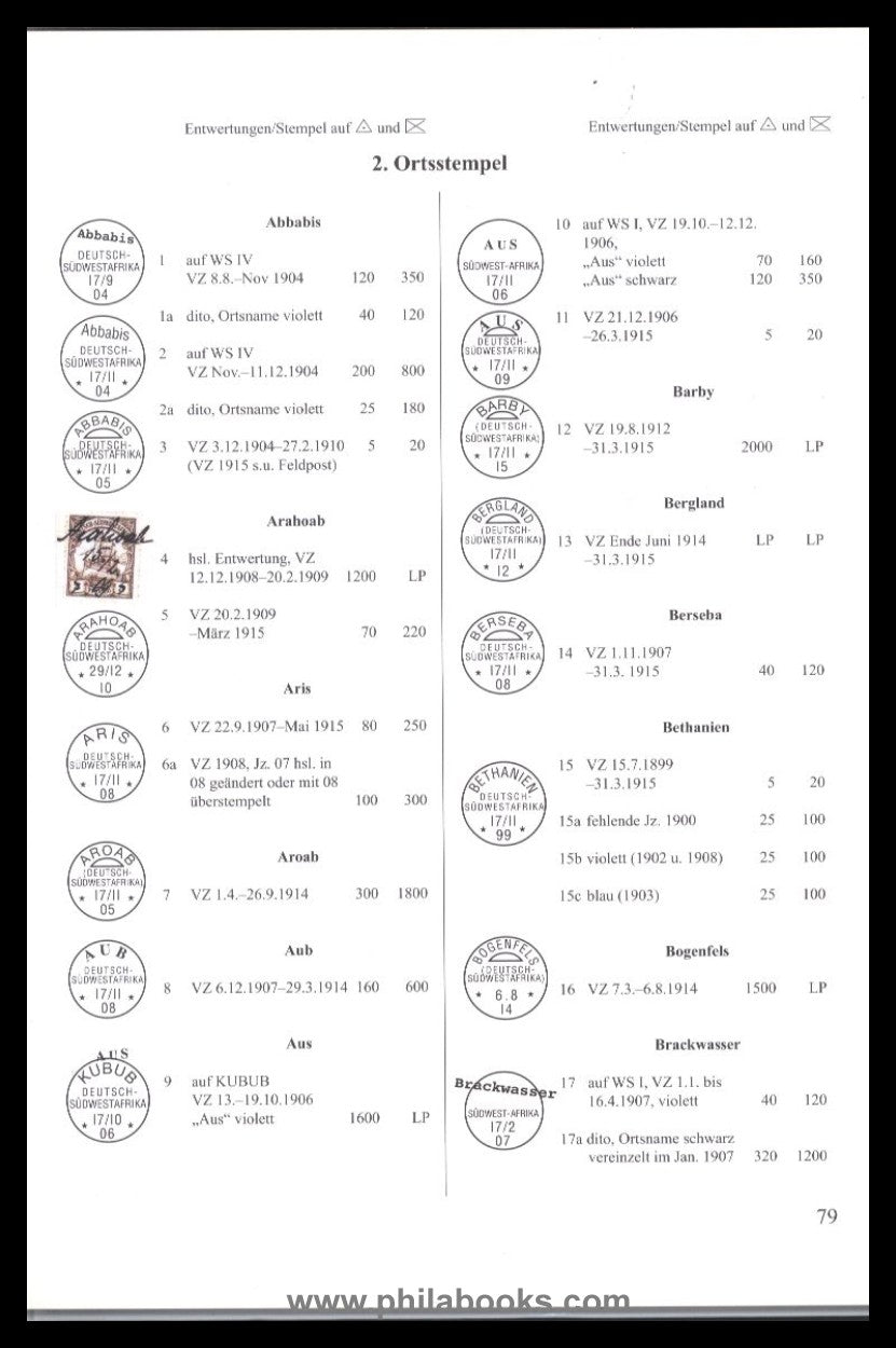 Gerlach, H.-H., /Birken, A., Deutsche Kolonien und deutsche Kolonialpolitik, Band 1, Deutsch-Südwestafrika, Atlas- Handbuch-Katalog der postalischen Entwertungen, 2. letzte Auflage, 2011, Hardcover, Format A 4, 112 S., davon 32 S. farbige Landkarten, mit Stempelbewertungen in EUR, druckfrisch #71610