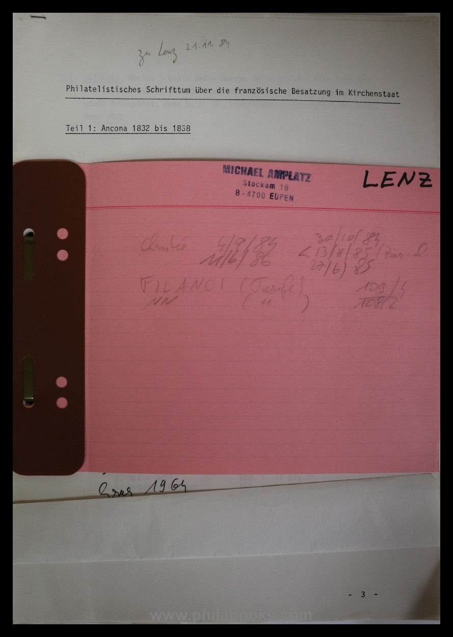 Lenz, Dietrich: Philatelistisches Schrifttum über die Besetzung des Kirchenstaates sowie die auch von Lenz verfassten Literaturschauen der Forschungsgemeinschaft Kirchenstaat ex Nr. 94-138 aus 1982-1994 mit vielen kompetent kommentierten Hinweisen auf Neuerscheinungen, ex Amplatz #71701