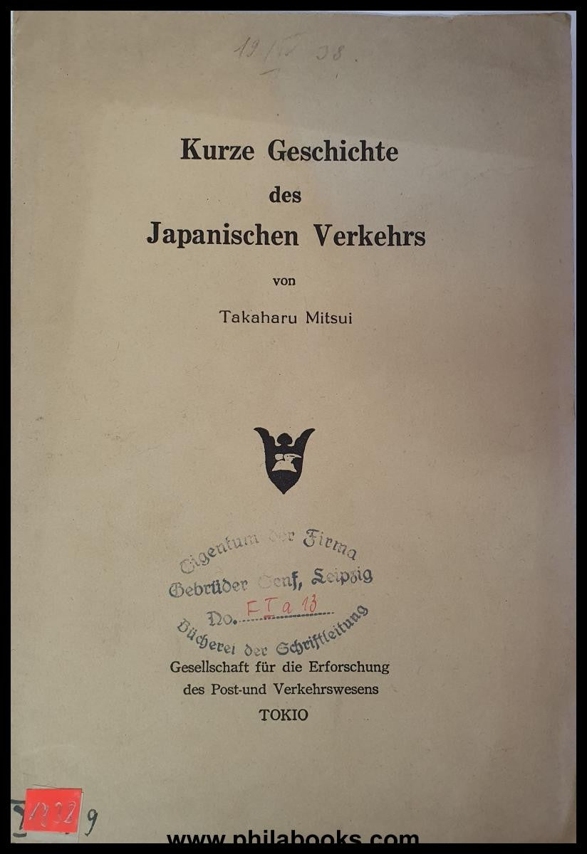 Mitsu, Takaharu: Kurze Geschichte des Japanischen Verkehrs, Gesellschaft für die Erforschung des Post- und Verkehrswesens, Tokio 1938, 29 S.,, seltene kleine allgemeine Schrift aus der Zeit der engen deutschen-japanischen Zusammenarbeit in den 1930er Jahren, ex Senf-Bibliothek (gestempelt auf Vorderumschlag) kaum, einmal angeboten #71793