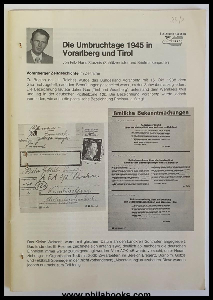 Sturzeis, Fritz H., Die Umbruchtage 1945 in Voralberg und Tirol, o.J., ca 1985, mit vielen Abb., #71861