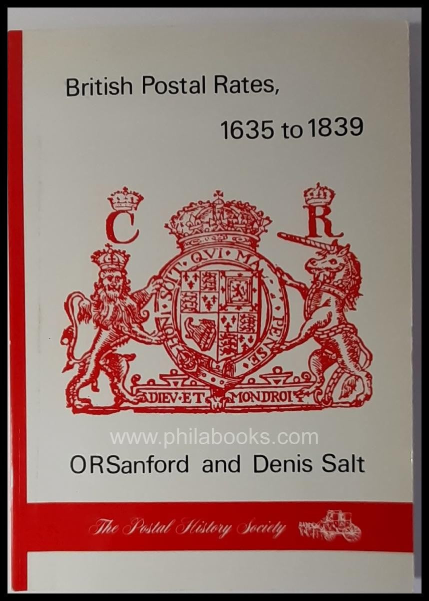 Sanford/Salt, British Postal Rates 1635 to 1839, 1990, Hdb. der brit. Posttarife In-und Ausland, inkl. Sondertarife für Drucksachen und Militärpost, in chronologischer Reihenfolge mit Hinweisen auf die Verordnungen, 163 S., vergriffen hier noch ein gutes Exemplar der broschierten Originalausgabe kpl. mit Korrekturblatt, (der Reprint mit Spiralbindung) #71962
