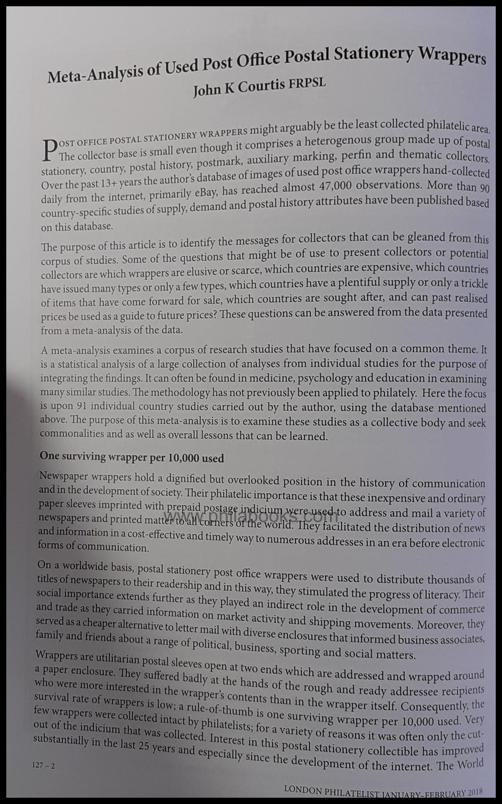 Courtis, J., K., Meta-Analysis of Used Post Office Postal Stationery Wrappers, Number 1452, January-February 2018 #72650