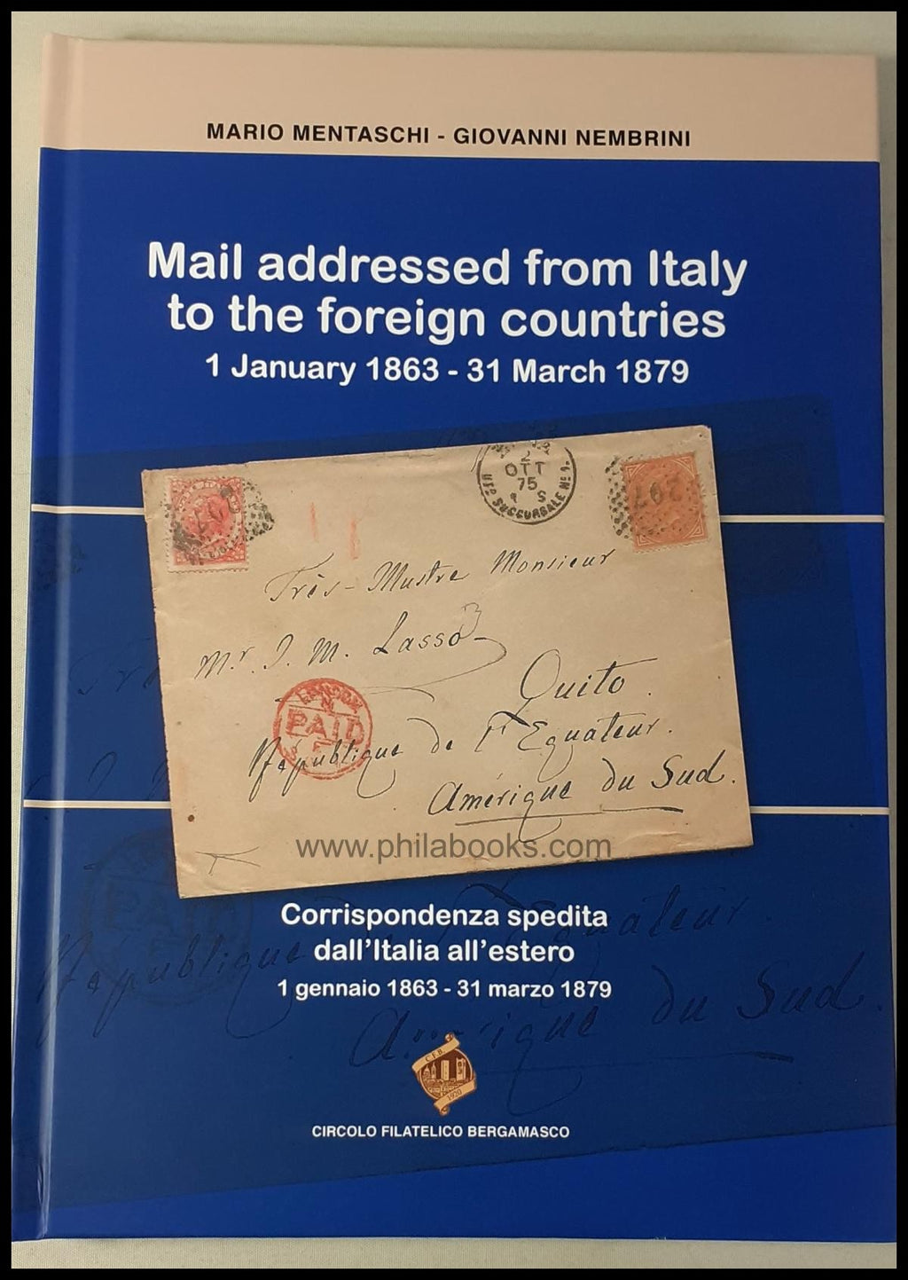 Mentaschi, Mario/ Nembrini, Giovanni: Mail addressed from Italy to the foreign countries, 1. January 1863-31 March 1879/ Corrispondenca spedita dall'Italia all'estero 1 gennaio 1863 - 31 marzo 1879, 2021, Handbuch der italienischen Auslandspost 1863-1879, nach Ländern geordnet mit Angaben zu den Bestimmungen, Tarifen und Berförderungswegen, dazu mit einer oder mehreren farbigen Belegabbildungen, 2-sprachig in italienisch & englisch, 192 Seiten, Hardcover, druckfrisch #72861