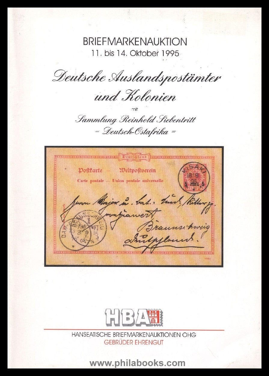 Siebentritt Sammlung Deutsch-Ostafrika, Sonderkatalog, Deutsche Auslandspostämter und Kolonien, HBA, Hamburg, 11.-14.10.1995, 1783 L., mit zahlr. Abb. auf 123 S/W-Tafeln u. farbigen Abb. im Textteil, ges. ca 300 S., wichtiger u. gesuchter Referenzkat., EL #7941