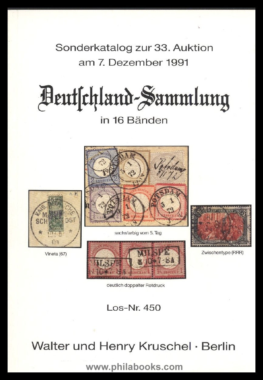 Kruschel, Walter und Henry, Sonderkatalog zur 33. Auktion, Berlin, 7.12.1991, Deutschland-Sammlung in 16 Bänden mit Auszügen auf ca 80 Seiten, dabei Brustschilde mit Besonderheiten sowie weitere Ausgaben Deutsches Reich, EL #8358