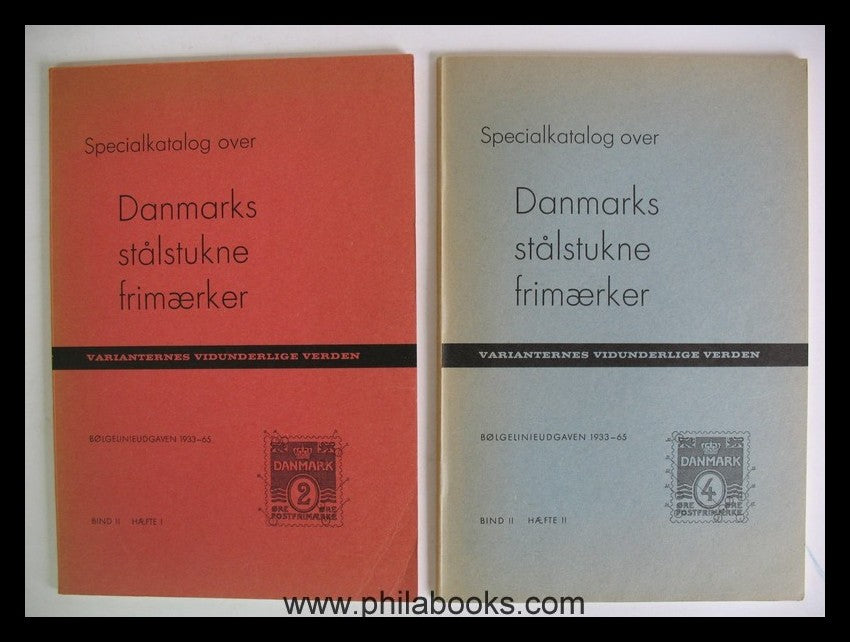 Specialkatalog over Danmarks Stalstukne Frimaerker, 1965, dänischer Plattenfehler-und Abarten-Spezialkatalog der Bogenlinienausgaben 1933-65, in 4 Teilen erschienen, hier als komplette Serie, zus. 185 S., viele Abb., gut erhalten, lediglich das Papier leicht gebräunt #9531