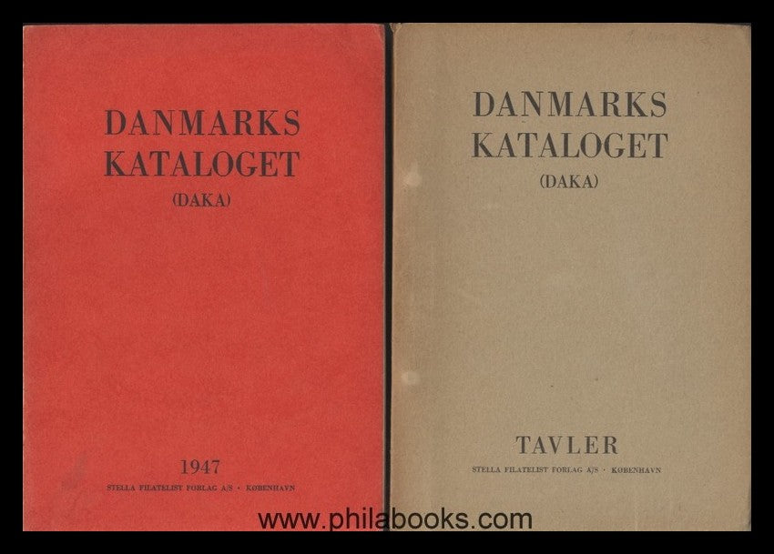 Daka, Danmarks Kataloget, Dänemark und Grönland Spezialkatalog, redigiert von Schmidt-Andersen und Flemming Rönne, 1947, 2-teilige Ausgabe, Katalogband mit separaten Fototafeln auf Kunstdruckpapier, im Anhang mit allen Nachträgen bis 1955 #9575