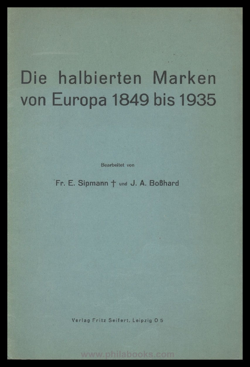 Sipmann/Boßhard, Die halbierten Marken von Europa 1849 bis 1935, erweiterter Sonderdruck aus den Germania-Berichten, Fritz Seifert, Leipzig, 1935, 19 S., Studie basierend auf der Auswertung früher Auktionskataloge u. Literaturhinweisen, Papier gebräunt, geringe Gebrauchsspuren, nicht häufig #9648